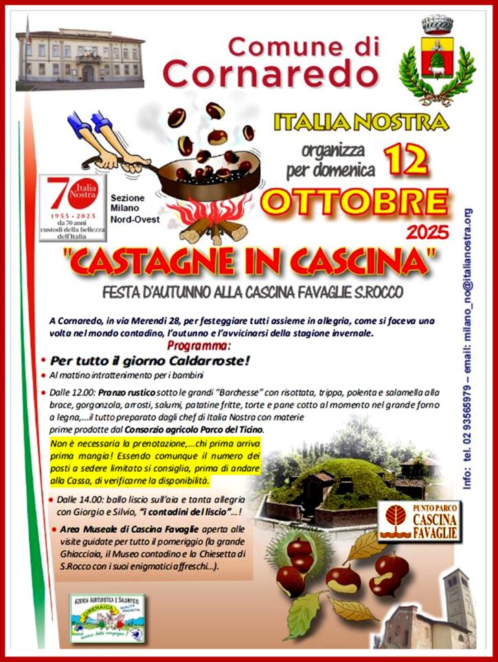 2016 Anche questo anno nella suggestiva atmosfera di Cascina Favaglie rinnoviamo l’ormai tradizionale appuntamento d’autunno. Domenica 9 ottobre 2016 la 7’ edizione della festa “Castagne in Cascina” Buona cucina, musica con ballo sull’aia, animazione per i bambini, esposizioni, mercatino, rappresentazione di momenti di vita contadina, e, soprattutto, tante caldarroste ci aspettano per tutta la giornata.